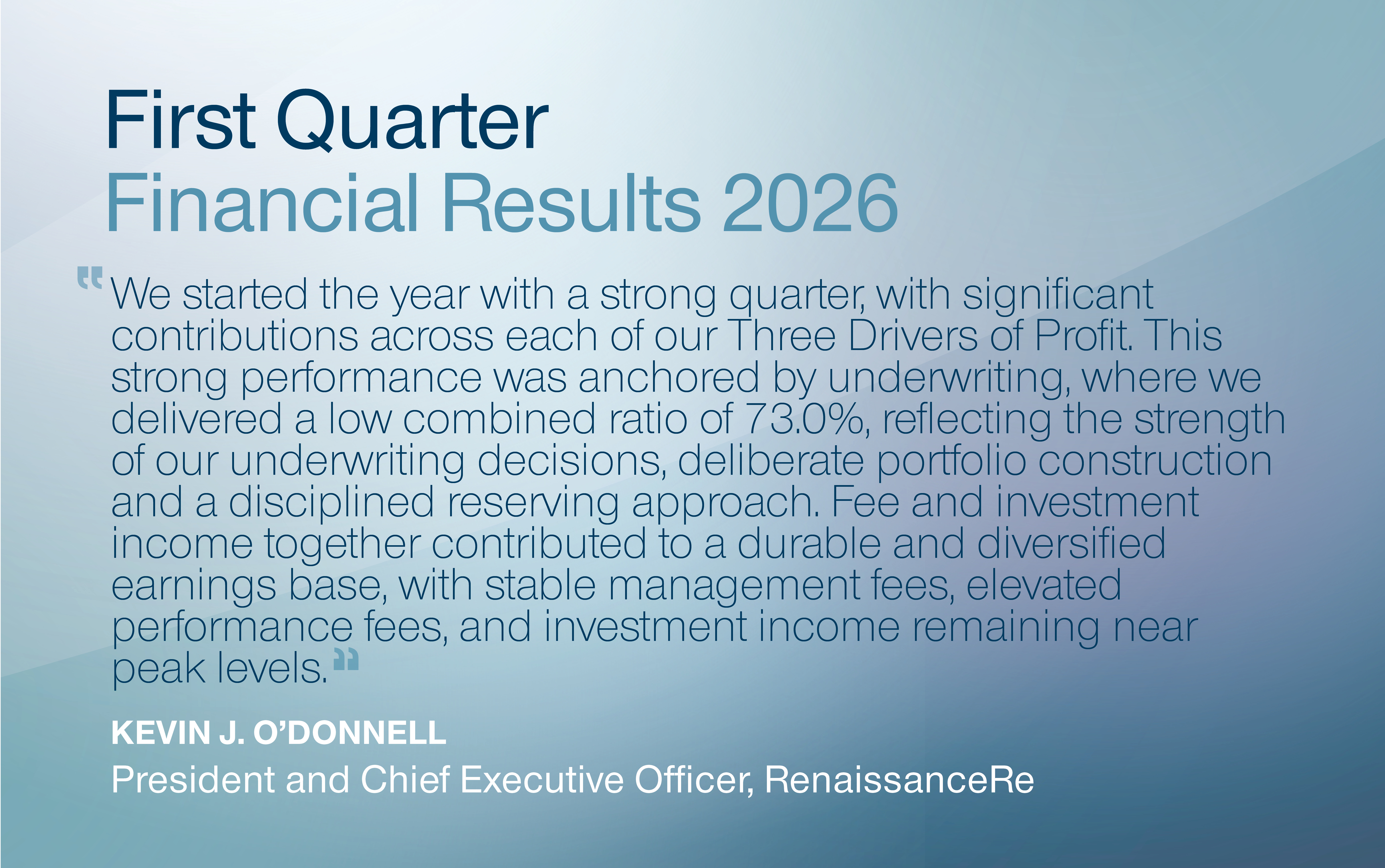 For over 30 years, our strategy has focused on constructing a well-diversified portfolio of reinsurance risk across property, casualty and specialty lines. Our vision is to be the best underwriter and our mission is to match desirable risk with efficient capital. We believe that this focused and consistent strategy enables us to deliver long-term superior returns for our shareholders from our three drivers of profit: attractive income from our core underwriting business, relatively low volatility fees from our Capital Partners business, and substantial net investment income from our prudent investment portfolio.